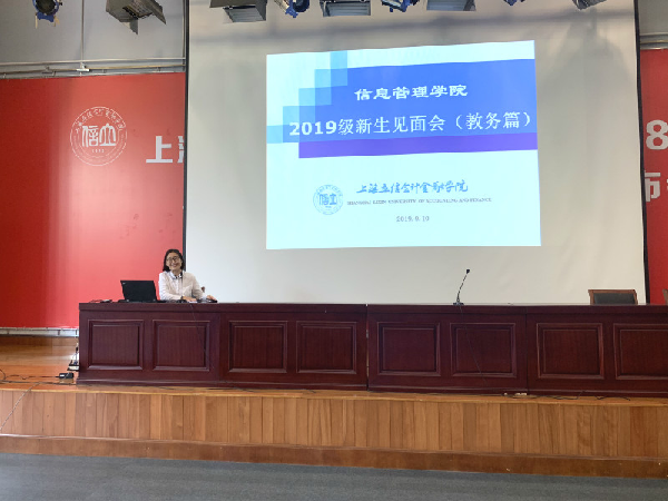 9月10日下午,信息管理学院在浦东校区行政楼一楼木兰报告厅召开2019级新生专业教育(教务篇)。信息管理学院副院长胡翠华、教务办公室主任黄洁、教务人员麻二磊和2019级全体新生出席会议,会议由胡翠华主持。