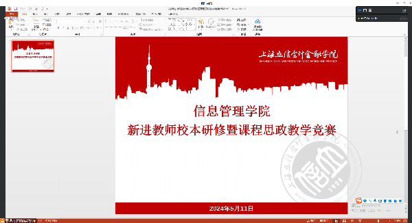 5月11日,为帮助新入职教师加强师德师风教育,树立正确的专业理念,提高教育教学能力,掌握必要的现代教育技术手段,加深对课程思政的了解,信息管理学院开展了新进教师校本研修暨课程思政教学竞赛活动。学院教学分委员会委员、新进教师、教务秘书参加了本次活动。