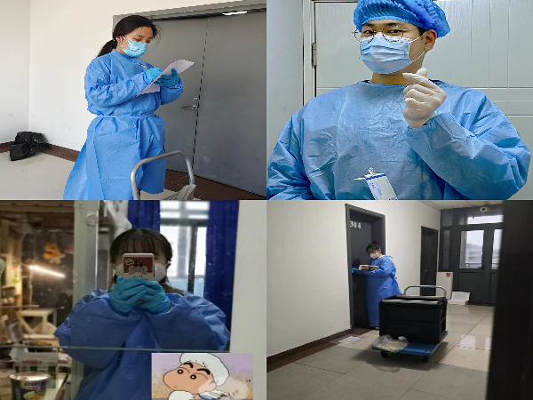 在校内的学生党员仝翊、王旭晴、雷彤、李浩天,入党积极分子张杰等同学也纷纷报名参加志愿者工作。当上川路校区因突发特殊情况采取对宿舍楼栋进行封控管理时,他们冲锋在前,主动报名加入到志愿者的队伍当中,为隔离在宿舍里的同学们分发餐食。