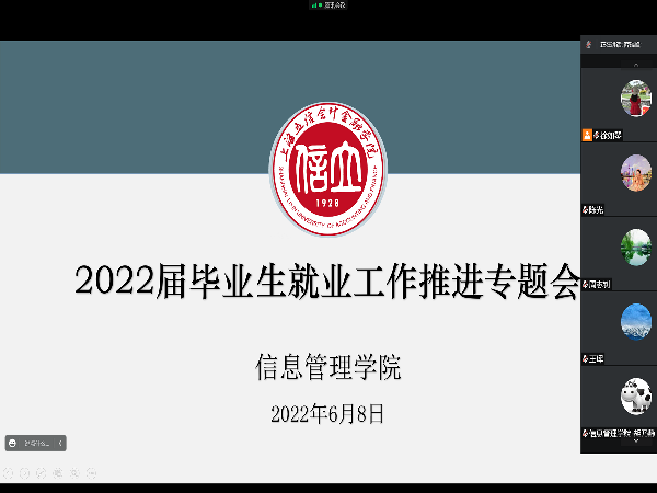 为进一步明确就业任务、落实主体责任,举全院之力共同实现2022届毕业生更加充分更高质量就业,信息管理学院于6月8日晚召开2022届毕业生就业工作推进专题会,学院党政班子全体成员、各系部主任、毕业班辅导员参加会议,会议由党总支副书记薛瑞峰主持。
