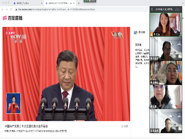 信息管理学院计算机基础教师党支部书记冷翠平老师表示党的二十大召开是载入史册的时刻,我们要高举中国特色社会主义伟大旗帜,坚持以习近平新时代中国特色社会主义思想为指导,深刻领悟“两个确立”的决定性意义,增强“四个意识”、坚定“四个自信”、做到“两个维护”,坚定历史自信、增强历史主动,踔厉奋发、勇毅前行、团结奋斗,不断开创新时代坚持和发展中国特色社会主义新局面,奋力谱写全面建设社会主义现代化国家的崭新篇章。