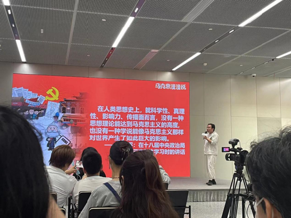 《马克思漫漫说·政治经济学》一书的作者徐亮老师通过漫画形式,生动直观讲述了马克思主义一直发展并成为伟大的指导思想的原因。同为《马克思漫漫说·政治经济学》一书作者的师志远老师从《共产党宣言》《资本论》两部不朽经典入手,运用生动的语言和诸多的实例,讲述了《共产党宣言》标志着马克思主义的诞生,是全世界共产党人的精神家园,是全世界共产党人奋斗的初心和原点。《资本论》科学阐明了劳动价值理论和剩余价值理论,在政治经济学领域实现了革命性的变革,为科学社会主义奠定了牢固理论基础。