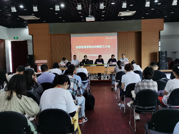 9月9日下午,信息管理学院在工会二楼活动中心召开了2023年秋季全体教职工大会,学院党政班子领导及全体教职工出席了此次会议,会议由党总支书记王铂主持。