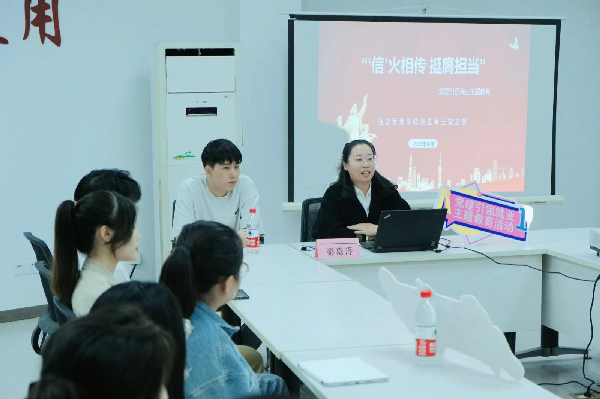 为引导学生做好学习规划,明晰就业方向,正确认识和把握当前形势,树立正确思想认识和价值取向。10月26日下午,信息管理学院学生第三党支部开展“信火相传,挺膺担当”党建引领就业校级观摩主题党日活动。本次活动邀请到2019级毕业生李伟超、秦嘉泽分享考研、就业经验,会议由信息管理学院第三党支部书记王心芳主持。学生第二党支部书记李梦瑶参加观摩。