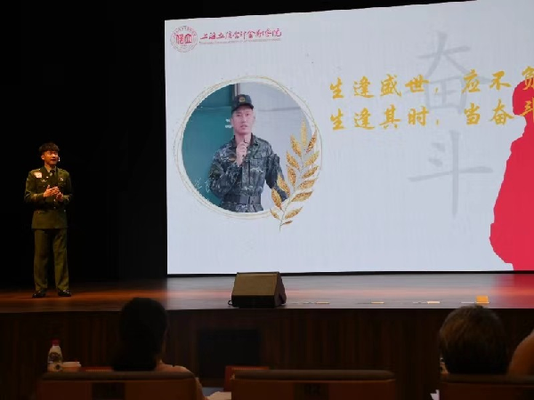 在这次大赛中,来自信息管理学院22级大数据技术(中日合作)班的林琨泰成为了全场焦点。林琨泰,一个不断追求卓越的学生,更是一个拥有军旅经历的退伍军人。他以自己的经历和感悟,讲述了《青春心向党,榜样引方向》的故事,他的故事传递出了坚持梦想、勇于挑战、乐于奉献的青春正能量,深深打动了在场的师生。