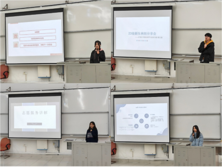 四位高年级学生结合自身成长经历依次进行教育宣讲。李红迁以“入党宣讲“为主题,为新生介绍入党的意义及入党的相关流程,鼓励新生积极向党组织靠拢。周文豪以项目获奖经历为例,细致介绍了相关重要科创赛事,激励新生深入实践,参与各类科创比赛。刘雅典介绍了志愿服务的意义及方式,鼓励新生们积极参与志愿者活动,在服务社会中锻炼提升自己。刘可欣从数学、编程类的课程出发,为新生介绍课程学习中可能遇到的问题,并分享了自己的学习方法和时间管理等技巧。