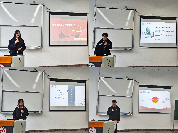 “红信桥”党员工作站副站长张坚强同学详细介绍了“红信桥”党员工作站的职责和工作内容。 四名高年级学生分别从入党启蒙、科创竞赛、志愿服务、专业学习四个方面进行宣讲。郑嘉丽同学介绍党的历史和入党流程,端正新生入党动机;王天翔同学结合自身参赛经历,详细介绍大创、互联网+、挑战杯等大学常规的科创比赛,鼓励新生勇于创新、敢于实践,尽早参加科创比赛;赵家骏同学结合志愿者和实践经历,引导新生树立正确的志愿者服务观念,鼓励新生积极参与志愿服务活动;李红迁同学向新生分享自己的学习经验,为新生的学习生活提供帮助。
