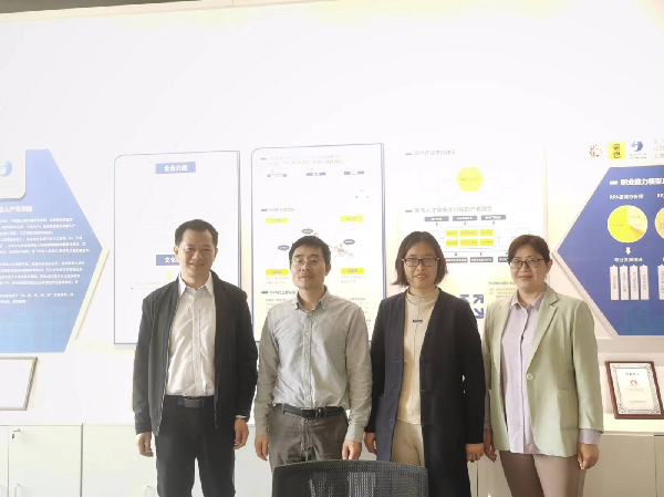 胡翠华一行在梁永副总经理的陪同下,参观了泓江科技。泓江科技是一家专注于中国高等院校数字化应用人才培养的国家高新技术企业。依据产业人才需求和未来发展趋势,依托产业为高校提供人才培养解决方案,并作为院校和和企业之间人才培养和输送的桥梁,围绕人工智能、大数据等新兴产业前沿科技,为高校提供专业建设、实训教学,师资培训和产业学院的建设服务。