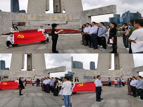 全体参与党员在上海市人民英雄纪念塔下重温入党誓词,进行了庄严的入党宣誓。同时,还参观了外滩历史纪念馆。