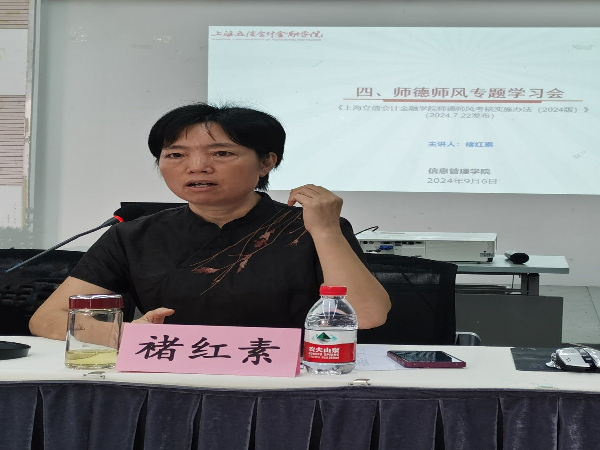 9月6日下午,信息管理学院在学生活动中心201召开了师德师风专题政治理论学习会,学院党政班子领导及全体教职工出席了此次会议,会议由党总支书记褚红素主持。