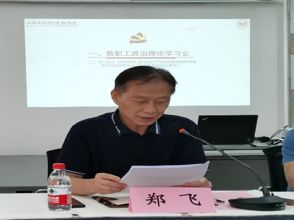 副院长郑飞结合《中共中央 国务院关于弘扬教育家精神加强新时代高素质专业化教师队伍建设的意见》进行导学,对文件中关于“加强教师队伍思想政治建设、“涵养高尚师德师风”、“提升教师专业素养”、“加强教师权益保障”、“弘扬尊师重教社会风尚”等内容一一进行说明。