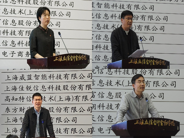 上海智期科技有限公司、上海乔天信息科技有限公司、上海宝尊电子商务有限公司、上海万学教育信息咨询有限公司、瑞伯职业技能培训(上海)有限公司作为业界和校友代表,分享了行业态势、单位业务、岗位要求、求职技巧等,并对学校进一步完善人才培养提出了意见和建议。
