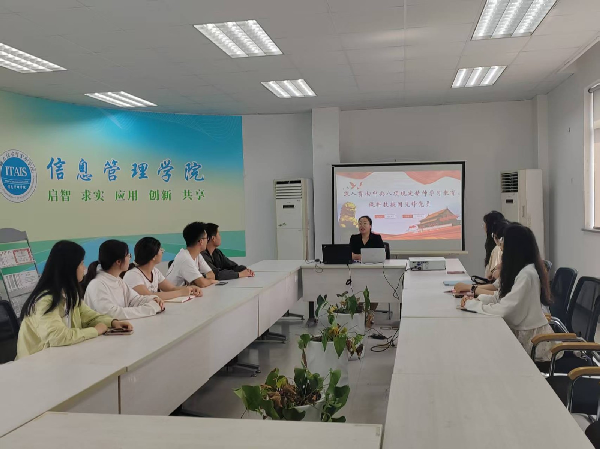 为深入贯彻中央八项规定精神学习教育,强化党员作风建设,激发党员科技报国使命担当,6月25日,信息管理学院学生第三党支部在一教318会议室举办主题为“深入贯彻中央八项规定精神学习教育,争做科技报国先锋党员”专题党课。本次党课由党支部书记王心芳主讲,支部全体党员参与学习。