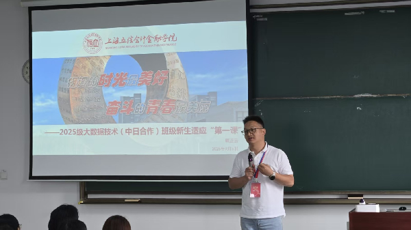 渡边恭人教授则聚焦日方院校,详细介绍了千叶商科大学的办学历史、学科优势、教学特色及人文环境,让在场师生与家长深入了解合作办学的国际化资源。施敏教授结合自身经验,细致解读了日本留学生活的注意事项、学习规划要点,并寄语新生要以梦想为帆、以勇气为桨,积极迎接跨文化学习挑战,在国际化平台上开拓视野、成长成才。顾正云给新生讲授了“相遇的时光最美丽 奋斗的青春最美丽”为主题的新生适应第一课。