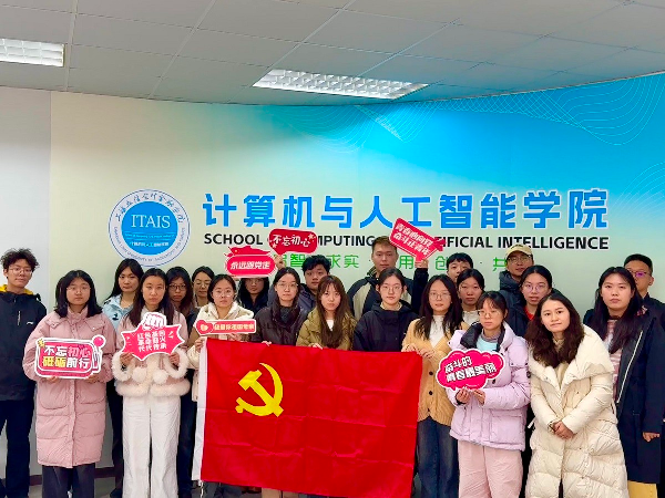 活动最后,全体党员合影留念,定格下此次学习的收获与砥砺奋进的决心。此次主题党日活动不仅深化了全体党员对党的二十届四中全会精神、“十五五”规划及国家战略的理解,也更加明确了学校的发展方向与自身的责任使命。计算机与人工智能学院党委学生第二党支部将以此次学习为契机,持续推动全会精神落地生根,坚持党建促发展、实干求成效,引导全体党员在人才培养、科研创新、服务社会等方面主动担当作为,为学校高质量发展、为实现“十五五”规划目标和中华民族伟大复兴的中国梦贡献智慧与力量。