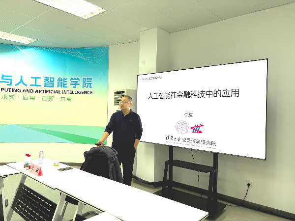 2026年1月6日,计算机与人工智能学院第二期“智信讲堂”学术活动在318会议室顺利举行。本次活动特邀清华大学交叉信息研究院长聘教授、博士生导师李建教授担任主讲嘉宾,围绕“人工智能在量化投资中的应用”展开分享。活动由学院副院长(挂职)徐鑫主持,吸引了来自院内外30余位师生积极参与。