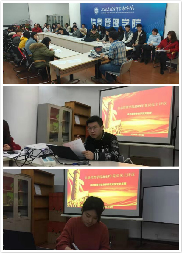 为认真学习贯彻党的十九大精神,增强党内政治生活的政治性、时代性、原则性、战斗性,按照上级要求,信息管理学院各学生党支部于3月6日在浦东校区1401会议室召开2018年度基层组织生活会暨民主评议党员活动。会议由各支部书记主持,全体学生党员参加。