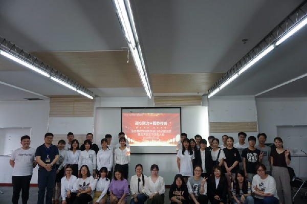 大会开始,与会人员全体起立奏唱歌。薛瑞峰书记首先在会上致辞,强调作为团干部应该树立正确的思想意识,在各自的岗位上做好本职工作,同时团干部要高度重视思想教育工作,加强团支部内部的凝聚力。孙苏暄对这一学年的院团委工作进行展示汇报,出色的工作赢得了一致好评。本次大会表彰了2018-2019学年优秀团日活动团支部6个及优秀团支书8名,分别由薛瑞峰书记、陈光书记颁奖并合影留念,徐菁阳、于云霞作为优秀团支部、优秀团支书代表发表讲话,分享经验。大会最后,所有与会人员一起合影留念。