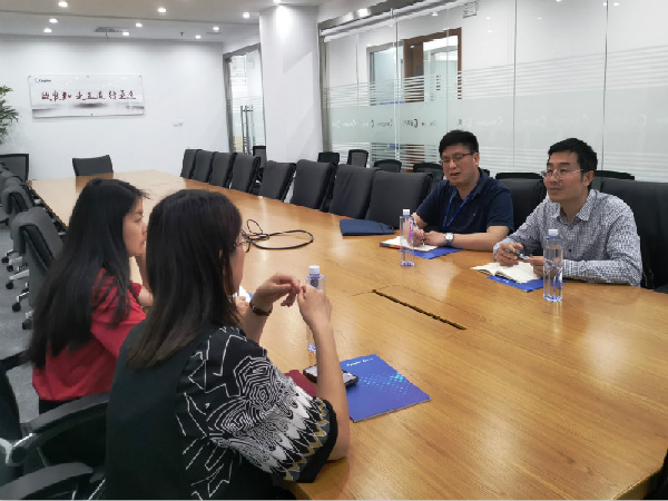 2019年6月3日上午,副书记薛瑞峰和副院长周欢一行赴张江金蝶管易云调研。周欢就学院基本情况、学生培养、产学研开展等方面作了详细介绍。薛瑞峰就专业实践安排、2020届毕业生招聘启动等作了沟通。运营管理总监谭桂菊介绍了金蝶管易云的发展情况,以及我院学生在公司的实习、工作情况。