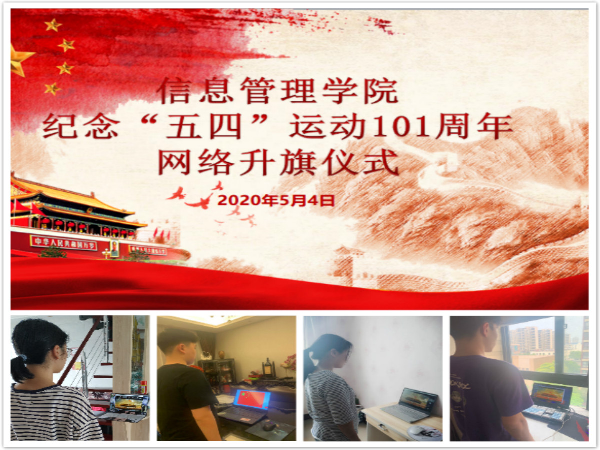 5月4日,信息管理学院举行主题为“学回信精神,担复兴大任”的网络升旗仪式。学院党总支书记张敏健出席仪式并讲话,党总支副书记薛瑞峰、全体思政辅导员及各班级学生代表近百人在线参加仪式。仪式由学院团委书记于文溶主持。