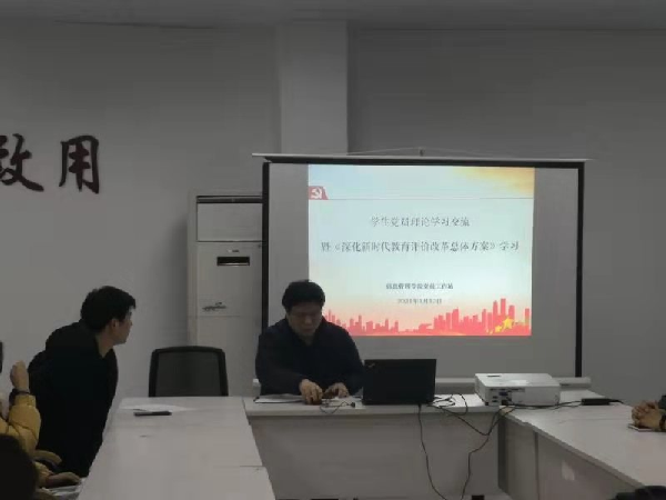 1月13日,党员工作站《深化新时代教育评价改革总体方案》专题学习会在1318举行,这是我院加强学生思想政治教育,深入贯彻学习党的重要文件精神的重要活动,会议由党员工作站庄晏同学主持,党总支副书记薛瑞峰老师出席并做指导,全体学生党员参加会议。