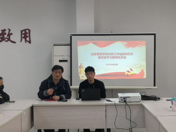 3月10日,信息管理学院新学期党员工作站启动仪式暨党史学习动员会在1教318会议室举行,这是我院党总支加强学生思想政治教育,贯彻落实党史教育目标,强化党员思想引领工作的重要内容,会议由站长庄晏主持,党总支副书记薛瑞峰老师做党史教育动员,各学生党支部全体在校党员参加。